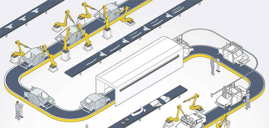 智昌集團(tuán)通過自主研發(fā)的三元控制技術(shù),面向機(jī)器人智能互聯(lián)、協(xié)同融合和群體智能控制,使得自動(dòng)化裝配線配置產(chǎn)線控制系統(tǒng)LCS和智能化快速換模系統(tǒng),可與MES/ERP系統(tǒng)有效集成,實(shí)現(xiàn)生產(chǎn)計(jì)劃生產(chǎn)指令直接下達(dá)到裝配線,裝配線自動(dòng)調(diào)用不同產(chǎn)品的控制程序和對(duì)應(yīng)的工裝,實(shí)現(xiàn)多種產(chǎn)品混線生產(chǎn)。采用3D視覺高精度定位算法、3D視覺高精度糾偏算法等技術(shù),能夠?qū)Χ嗥奉?、無序來料的汽車零部件精準(zhǔn)識(shí)別抓取及高精度糾偏裝配。同時(shí),裝配線通過LCS系統(tǒng),可實(shí)時(shí)將生產(chǎn)進(jìn)度及設(shè)備狀態(tài)信息上傳到MES系統(tǒng),實(shí)現(xiàn)閉環(huán)管理。